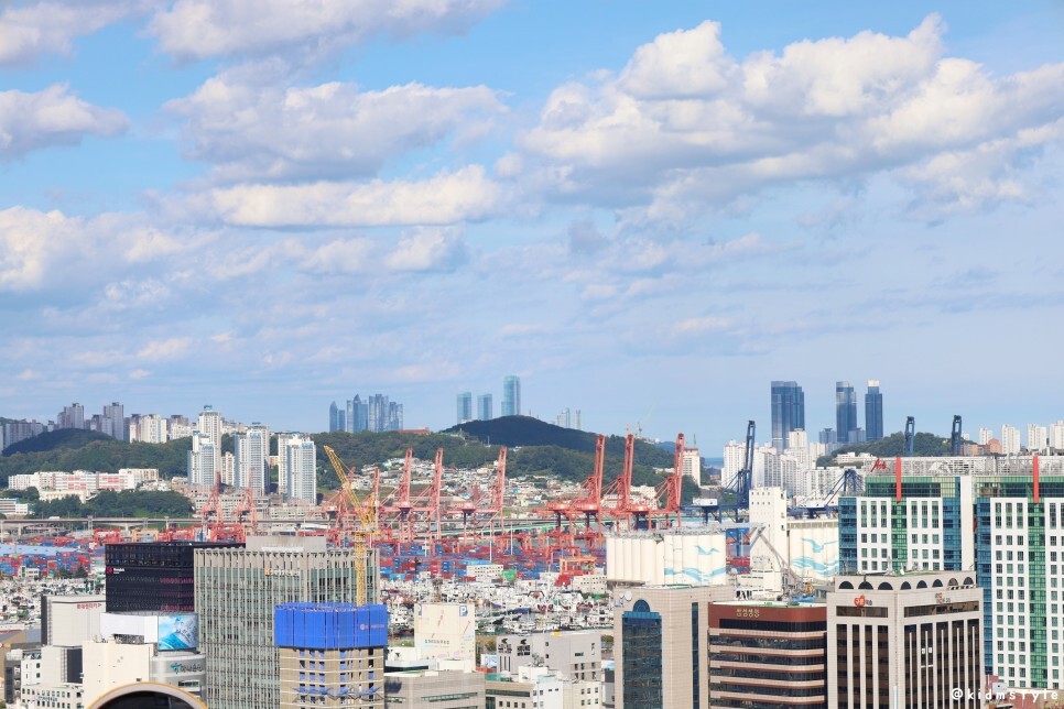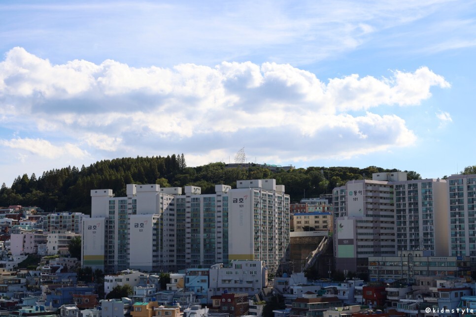 실시간으로 변화하고 있는 초량 일대와 저 멀리 해운대 엘시티 건물까지 선명하게 보인다. 부산에서 경치가 좋기로 유명한 황령산도 아파트 뒤로 살짝 보인다.