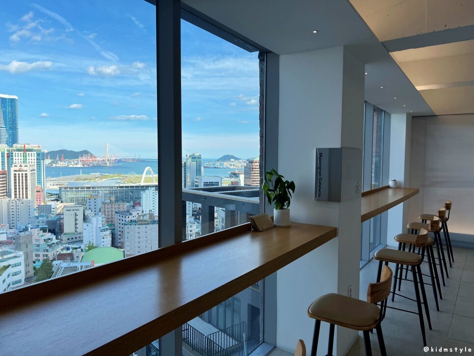 모노레일 상부 승강장 바로 오른쪽에는 명란브랜드연구소 카페테리아가 있어서 차 한잔하면서 풍경을 감상하기 참 좋다. 루프탑에서도 경치를 볼 수 있다.