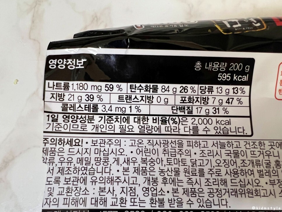 영양성분 정보이다. 사실 이걸 보면 인스턴트 제품은 먹기가 좀 꺼려지는 것은 사실이지만 그래도 간편하니까 맛있으니까 먹게 된다.
