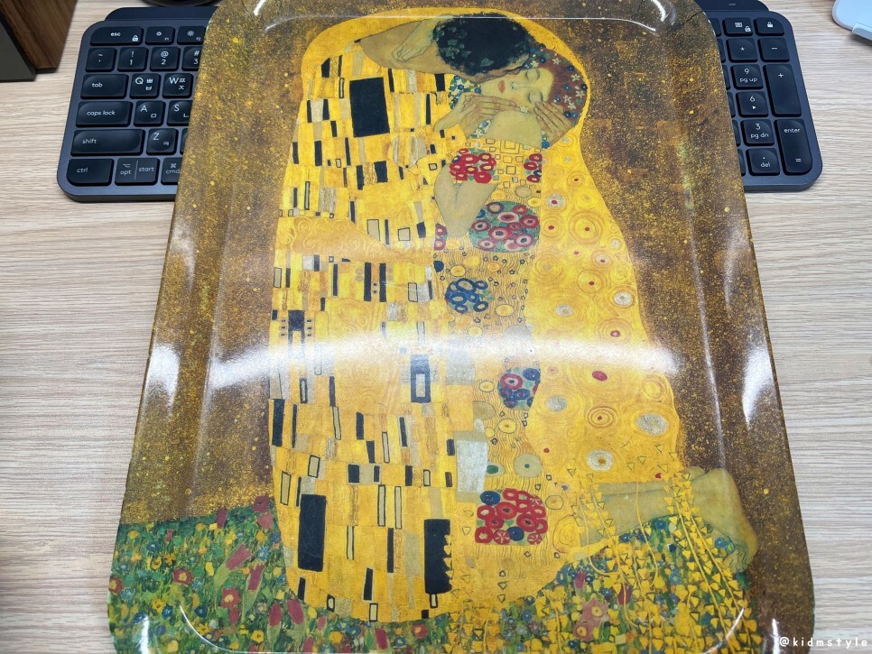 주방에서 식사 공간 어디든 열심히 제 역할을 해주는 쟁반을 소개해 본다. 허접해 보이지만 쟁반을 세로로 두고 보면 명화가 보인다. 미술에 관심이 조금이라도 있는 분들이라면 이 작품을 알 것이다. 열정적인 사랑을 표현한 연인 Liebespaar (키스 Kuss)라는 작품인데 누구의 작품인지 맞춰보시기를 바란다. 물론 상품은 없다.