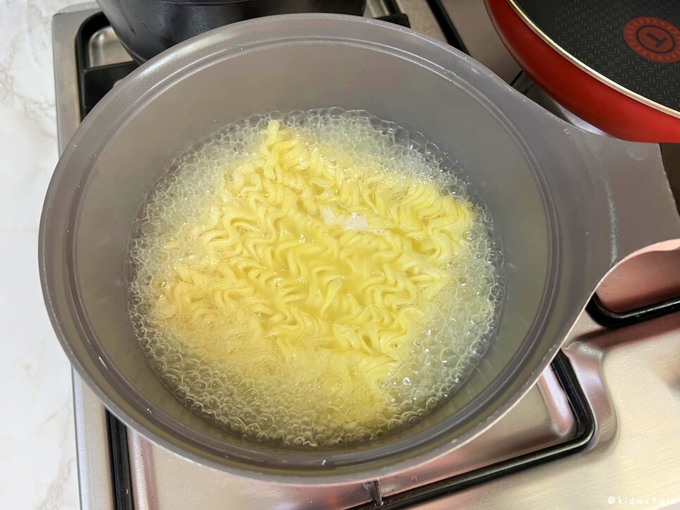 후추와 깨소금 마니아라서 조금 뿌려 보았다. 아까 봉지를 열어보고 느꼈지만 예상대로 면발은 라면보다는 굵은 편이다. 건더기 고명도 꽤 많아 보인다.