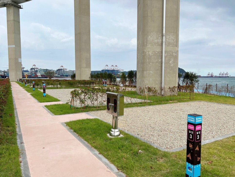 영도구 청학동으로 가다 보면 부산항 대교로 진입하는 길이 있습니다. 그 아래에 조성된 캠핑장인데요. 다리 밑 부지가 깔끔하게 재정비되어 오토캠핑장으로 탈바꿈한 것입니다. 기존에 있던 산책로는 그대로 이용할 수 있습니다.
