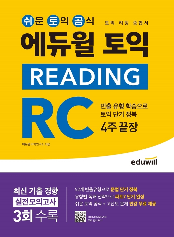 쉬토공이다. 쉬운 토익 공식 에듀윌 토익 READING RC. 토익 하니까 학창 시절 열심히 공부하던 시기가 생각난다. 지금은 어떤지 모르겠는데 내가 첫 취업을 할 당시에는 대기업도 토익 점수가 대부분 700점, 750점 이상이면 지원이 가능했던 시기이다.