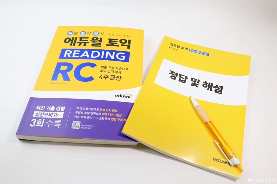 토익문제집추천, 에듀윌 토익 READING RC 4주 끝장! 제목이 거창한듯하지만 오늘 소개할 책의 제목이다. 오래간만에 토익 문제집을 받아들고 한참을 살펴보았다. 영어를 따로 사용할 일이 잘 없어서 공부를 등한시하고 있었는데 코로나도 끝나가고 만국 공통어인 영어 공부를 다시 좀 해보자는 생각이 든다.