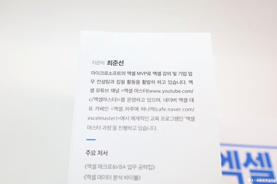 이 책을 만든 사람은 최준선이라는 분인데 꽤 유명한 분이다. 엑셀 유튜브 채널을 운영하고 있으며 네이버 엑셀 대표 카페인 엑셀, 하루에 하나씩 카페에서 교육 프로그램을 진행하고 있다고 한다.