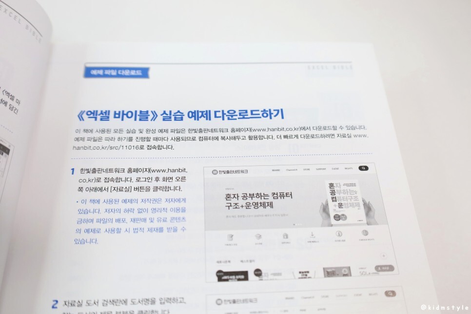 한빛출판네트워크 홈페이지의 자료실에서 실습 예제를 다운로드할 수 있다. 책만 보는 것보다는 확실히 하나하나 직접 해보는 게 숙달도 잘되고 빠르다.