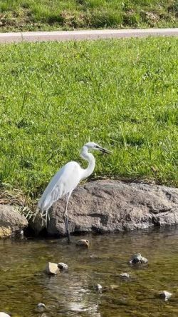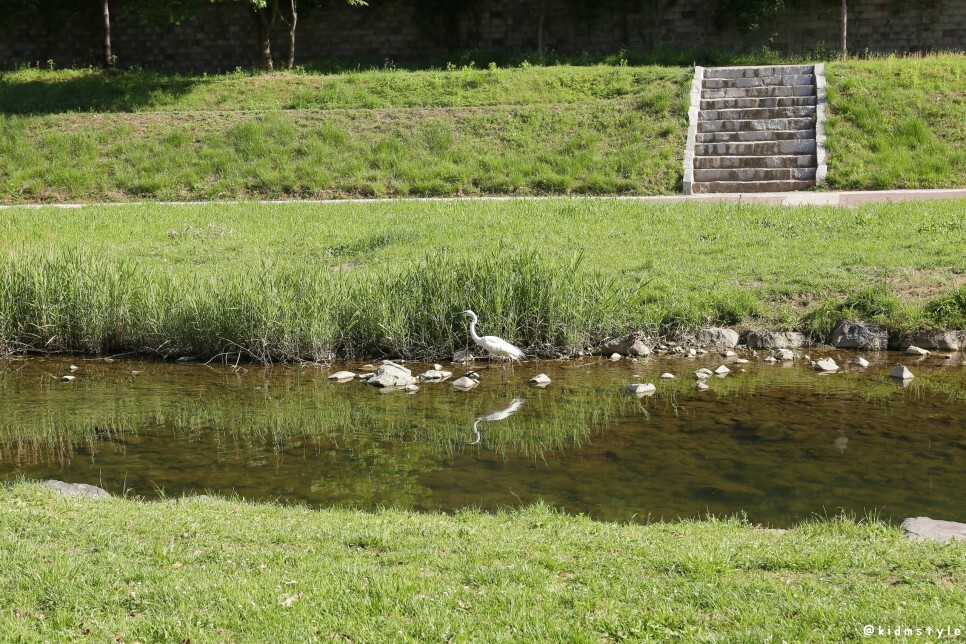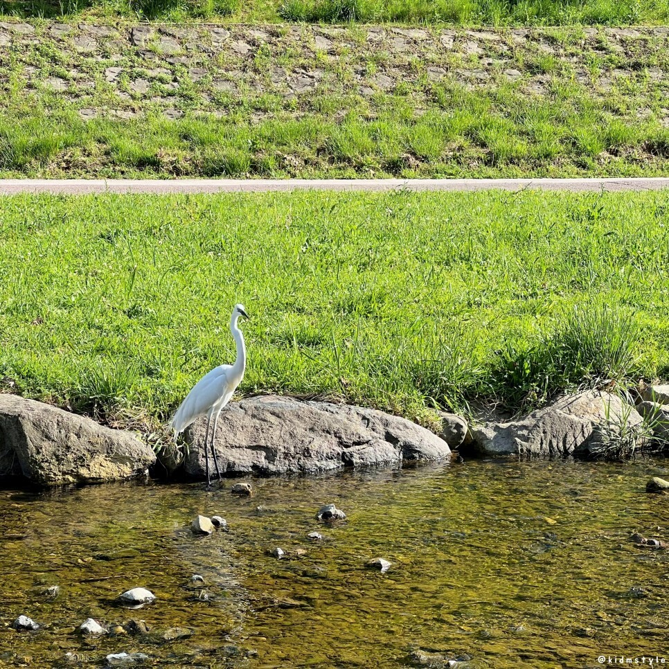 산책을 나서자마자 백로를 만났다. 고운 자태를 뽐내면서 먹이를 찾아서 어슬렁거리는 모습이 참 귀엽다.