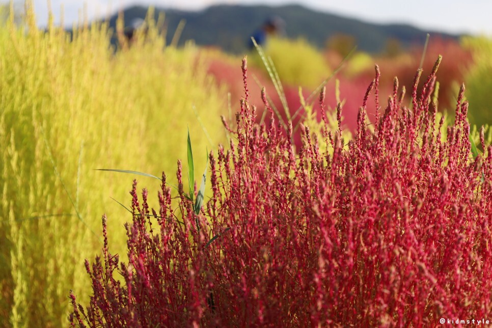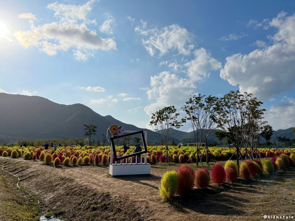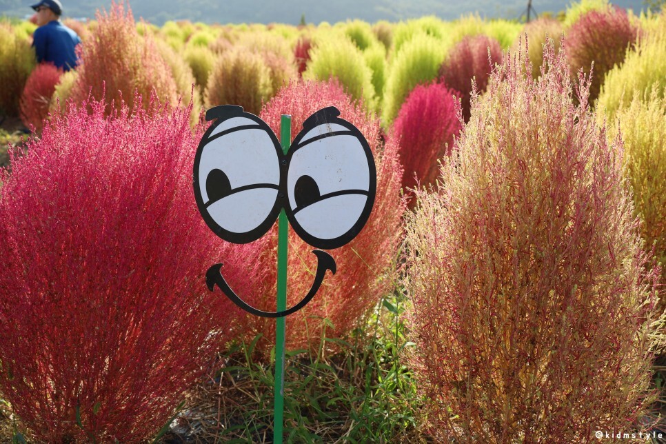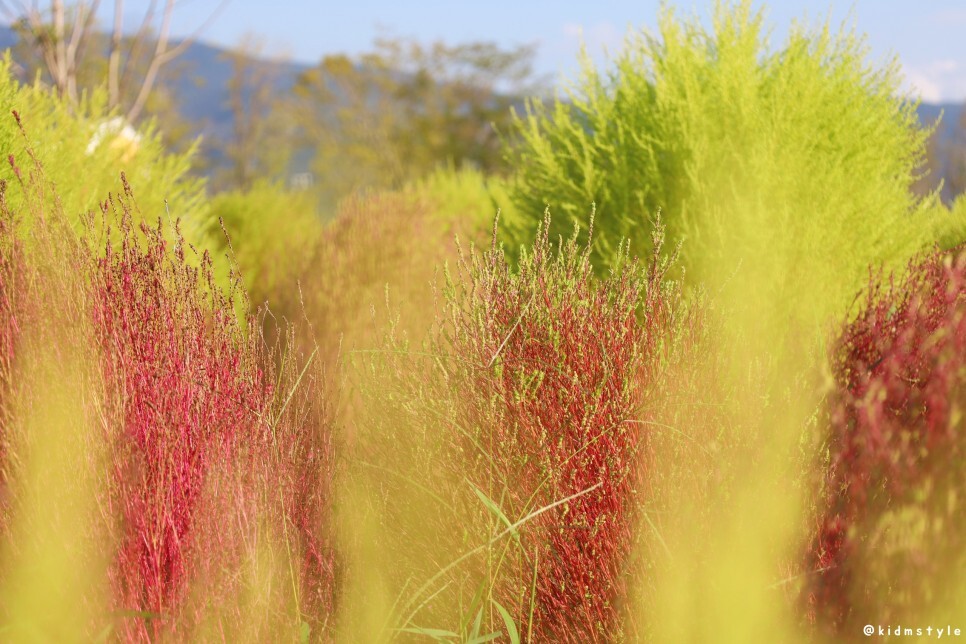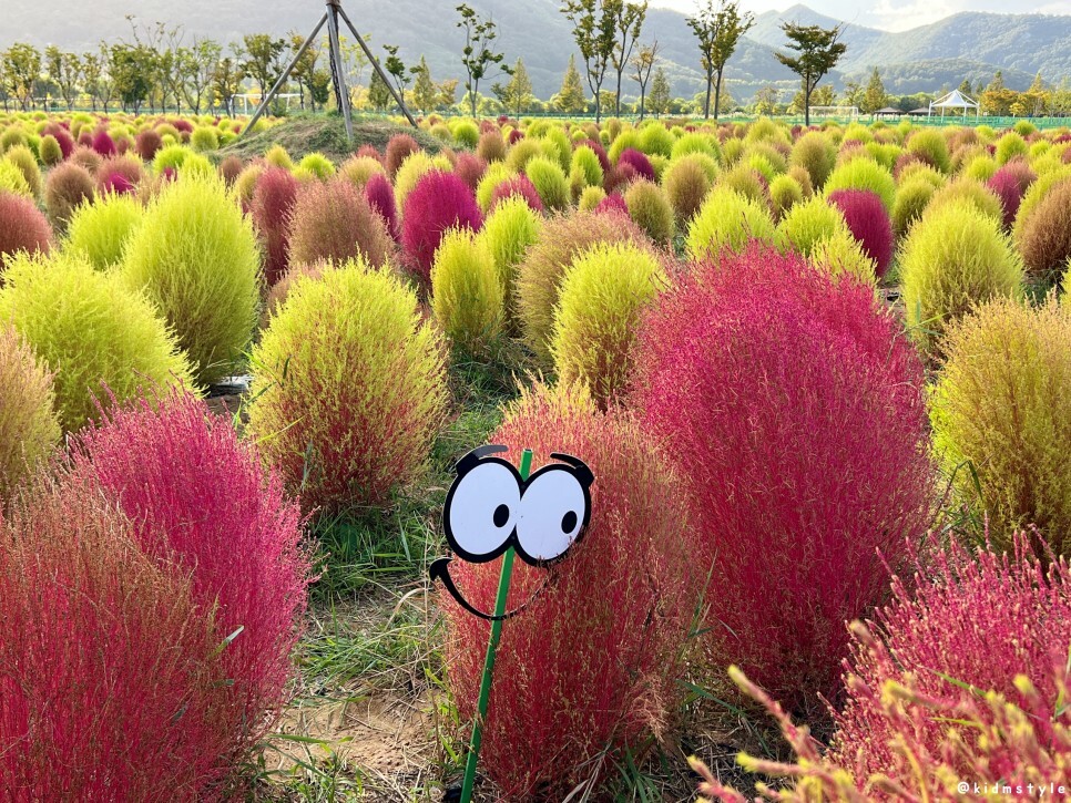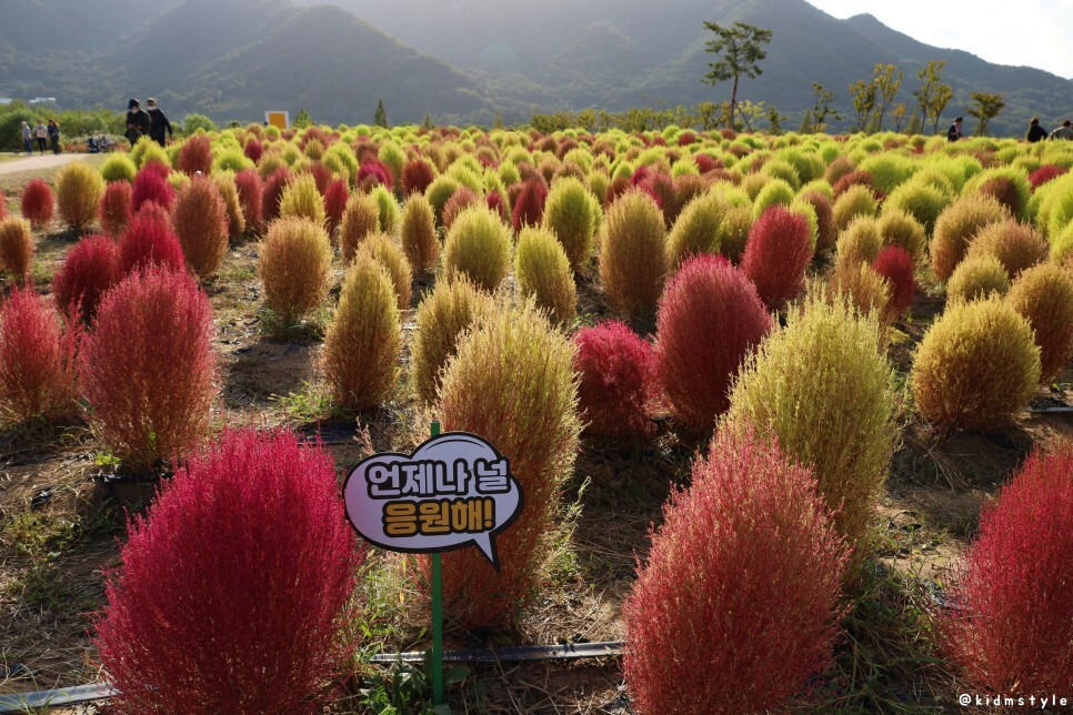 밑으로 내려와서 본격적으로 댑싸리와 황화코스모스를 구경해 본다. 댑싸리가 무엇일까? 궁금해하는 분들을 위해 아래에 안내 입간판에서 가져온 설명을 간단하게 해본다. 핑크 뮬리로 오해하는 경우도 있는데 댑싸리와 핑크 뮬리는 전혀 다르다.