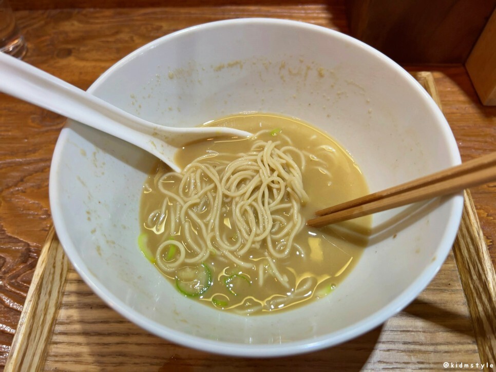 앞서 말했지만 본인이 짠 음식을 싫어하거나, 라멘 초심자인 경우 맑은~ 라멘으로 주문하는 것을 추천한다. 한 숟가락 맛을 보니 호기롭게 진한~ 라멘 주문했다가 왜 이리 라멘이 짜니 어쩌니 불평불만을 늘여놓을 수도 있을 것 같기 때문이다. 그런 경우에는 차라리 이곳보다 염도를 확 낮춰서 우리 입맛에 맞춘 그런 한국식 라멘집을 가는 게 나을 수도 있겠다.