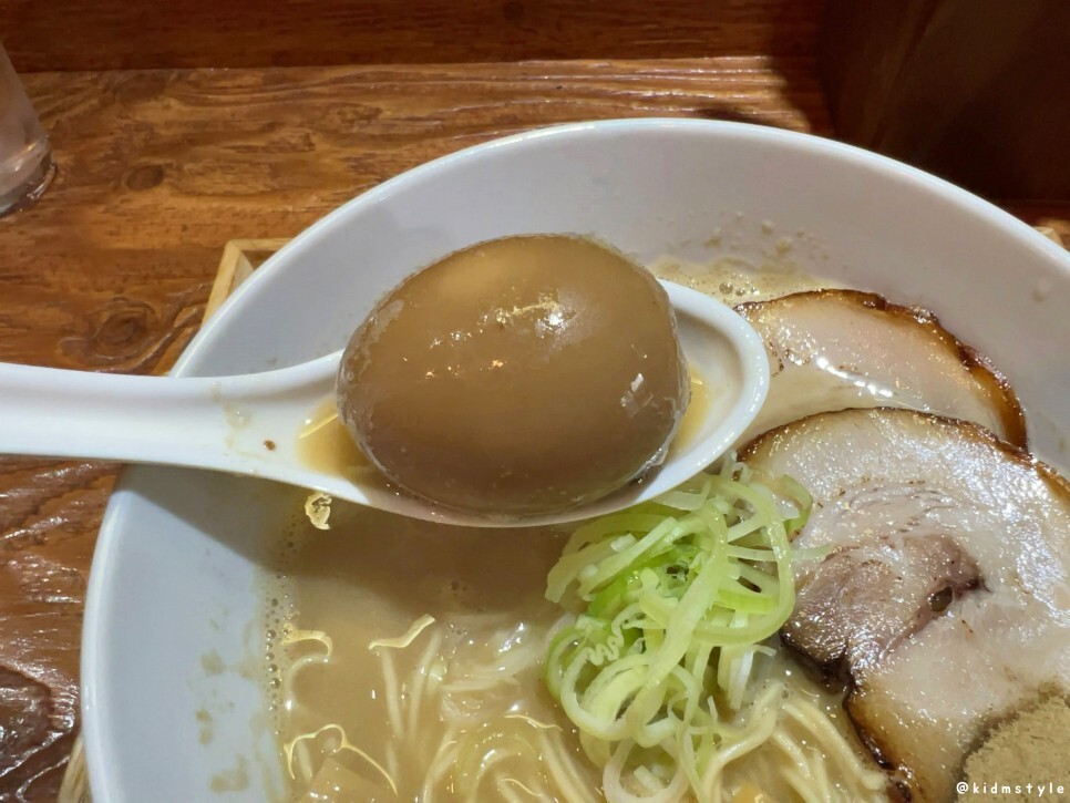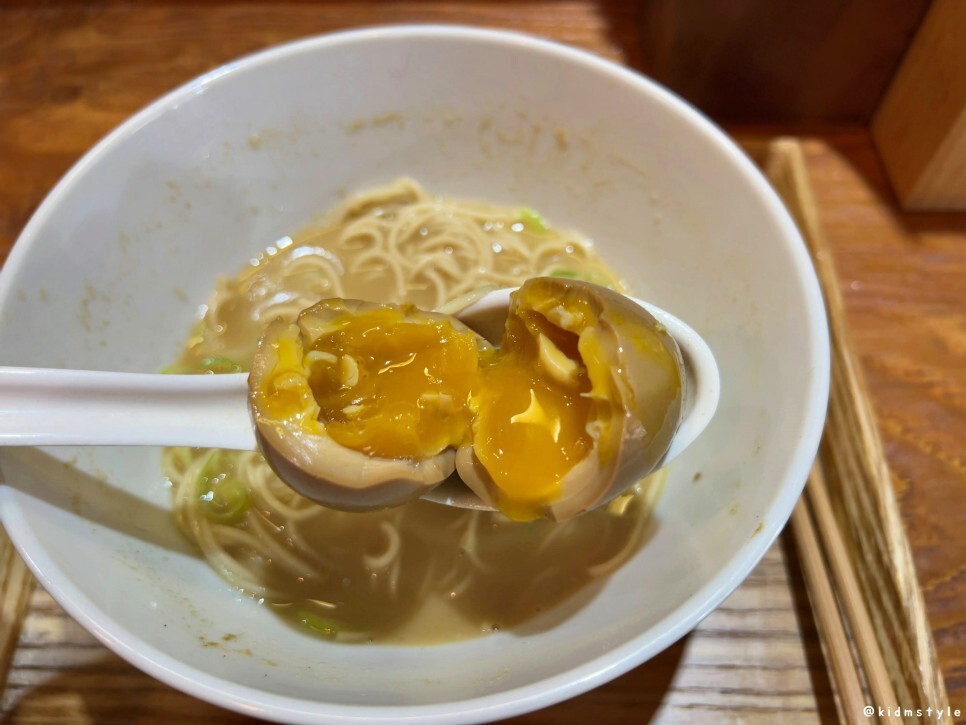 모든 라멘에는 계란이 들어가지 않으니 맛볼 사람은 주문하면 되고 면은 딱딱한 식감인 바리카타로 제공된다. 염도 조절, 면 익힘 정도는 조절이 가능하니 주문할 때 말하면 되는데 이걸 제대로 안 보고 주문했네. 바리카타보다는 카타가 내 취향이라 다음에 가면 카타면으로 요청할 생각이다.