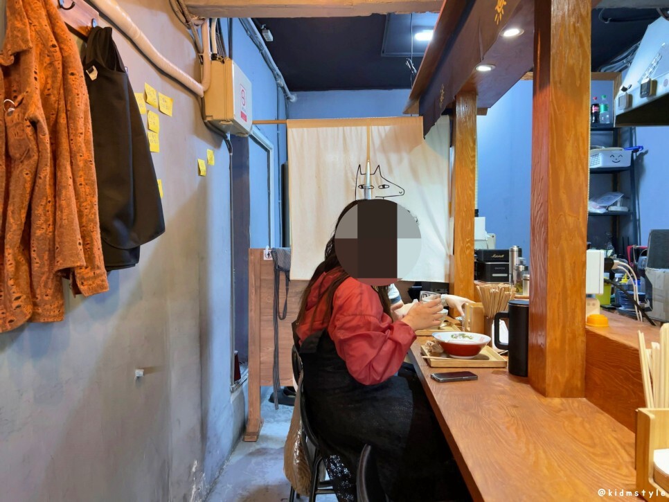 내부는 좁은 편이다. 6명 정도가 동시에 식사할 수 있으며 주방이 바로 앞에 보이기 때문에 조리과정을 볼 수 있다.