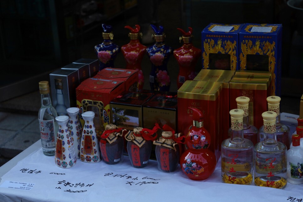 이쪽 매대에는 다양한 중국 술이 저렴한 가격에 판매되고 있었어요. 중국 술을 좋아하는 분들에게 꽤 인기가 있을 것 같았습니다.