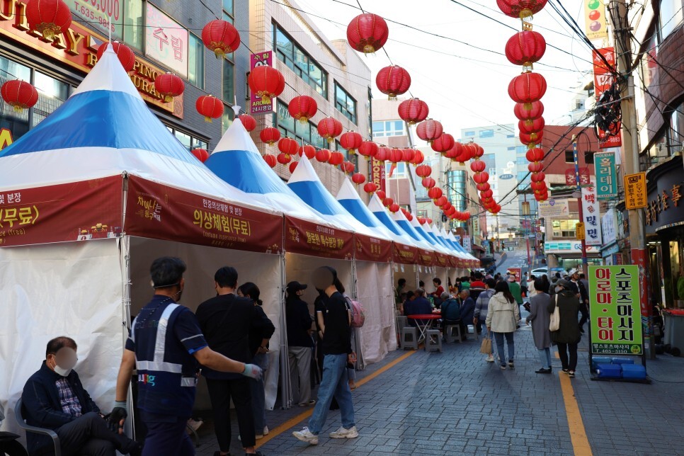 한중의상체험을 할 수 있는 부스 등 다양한 부스가 도로에 차려졌는데요. 의상 체험, 할로윈 특수분장이 무료입니다. 벌써부터 줄을 서고 기다리는 모습을 볼 수 있었습니다.
