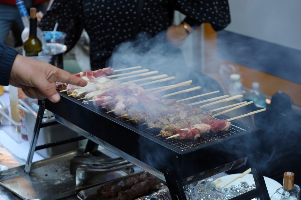 중앙아시아식 양꼬치를 즉석에서 구워주는 모습도 볼 수 있었습니다. 양꼬치 하나 사서 시원한 맥주 한잔할걸 그랬네요. 이곳 말고도 중국식 양꼬치, 대만식 소시지 등 다양한 먹거리가 즐비한 거리였어요.
