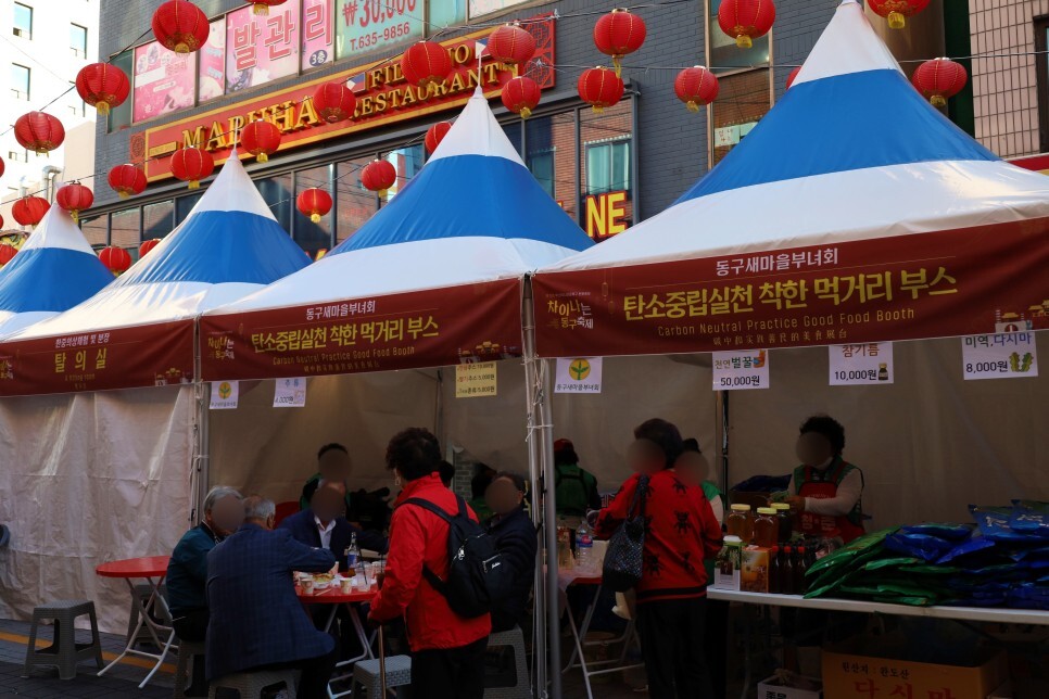 동구 새마을부녀회에서 운영하는 탄소중립실천 착한 먹거리 부스에는 시원한 맥주 한잔하는 손님들이 자리를 잡은 모습이고요.
