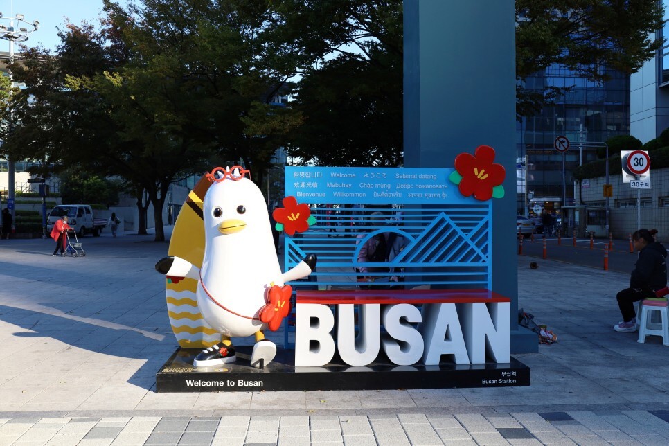 건너기 전에 부산을 상징하는 마스코트 '부기'와 함께 포토존에서 사진 한 장 찍는 것 잊지 마시고요. 참고로 부기는 부산 갈매기의 약자랍니다. 너무 귀여워요.
