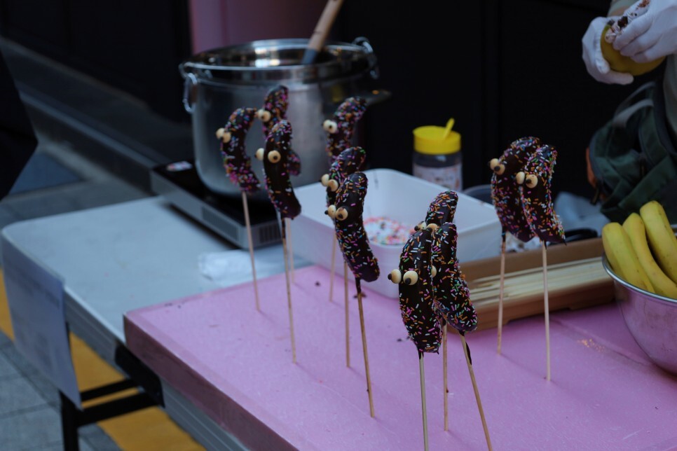 바나나에 초콜릿 옷을 입은 맛있는 간식도 저의 시선을 붙잡았고요.