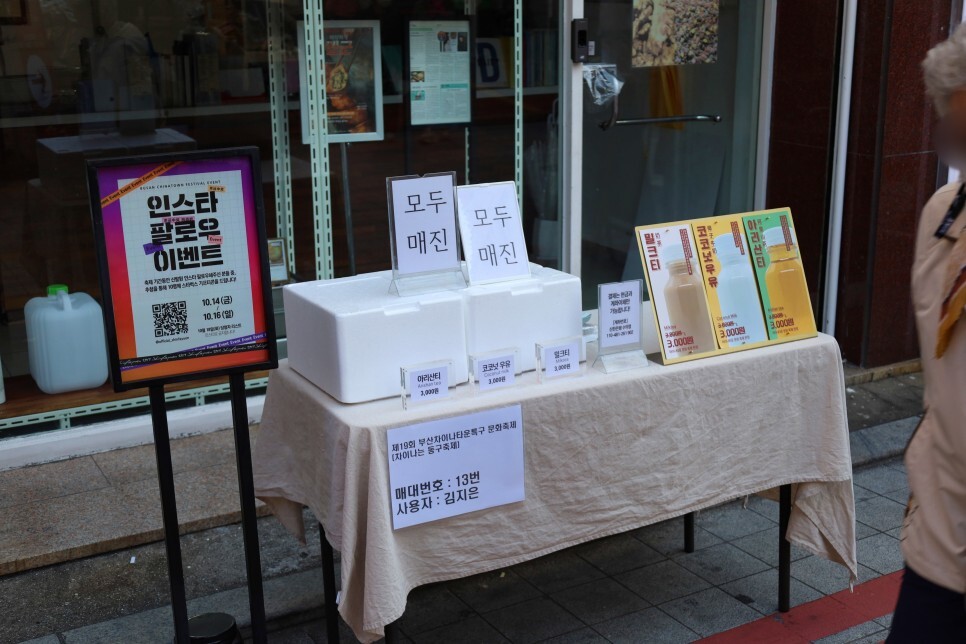 밀크티 등은 벌써 매진이네요. 인기가 많은가 봅니다. 이처럼 거리 곳곳에 매대를 설치하고 판매하는 모습을 볼 수 있는데요. 축제 이전에 미리 신청을 받아서 이렇게 운영되고 있습니다.