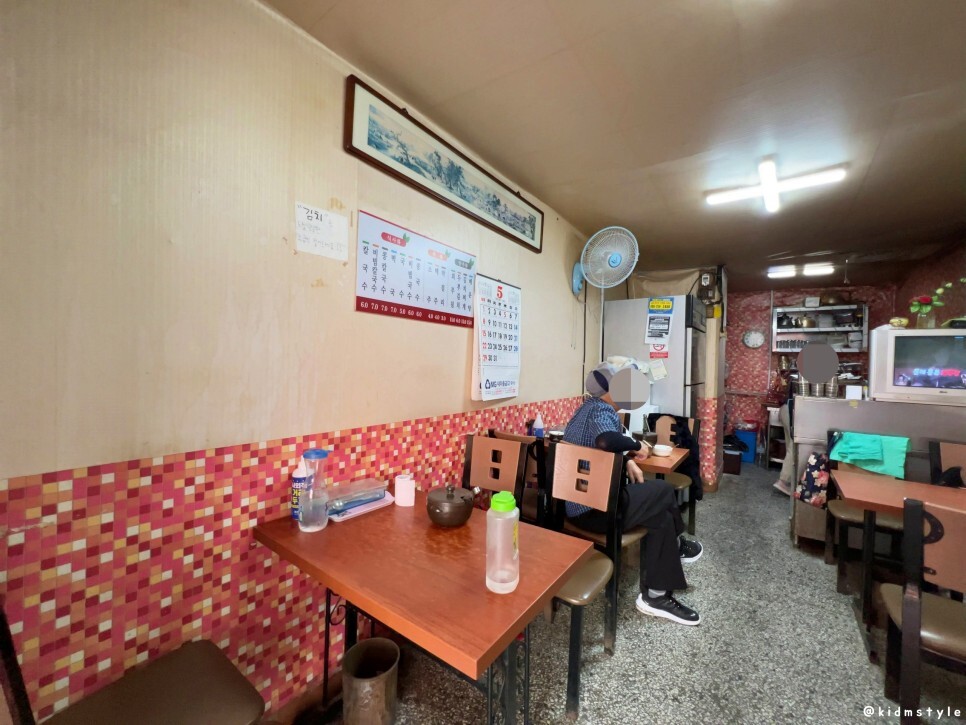 테이블 4개, 도끼다시 바닥의 정겨운 분위기, 거기다가 점심시간을 피해서 갈 때마다 단골로 보이는 아재들이 꼭 한 명씩은 식사 중인 모습을 볼 수 있다.