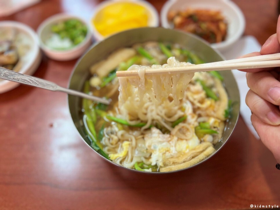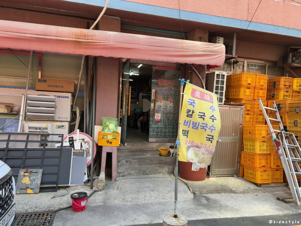 입구에 배너가 이렇게 놓여있으니 찾기는 쉽다. 예전에는 진짜 숨은 맛집이었는데 내가 블로그에 소개한 이후로 많이 유명해졌다. 그래서 갈 때마다 사장님이 돈을 안 받으려고 하신다. 하지만 늘 칼국수 값 드리고 온다.