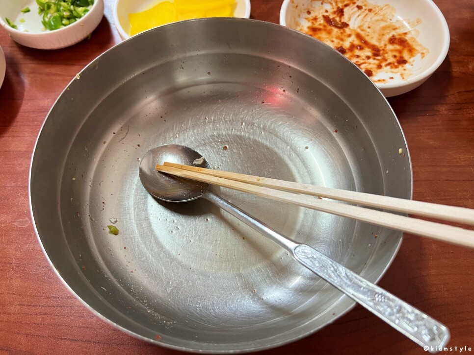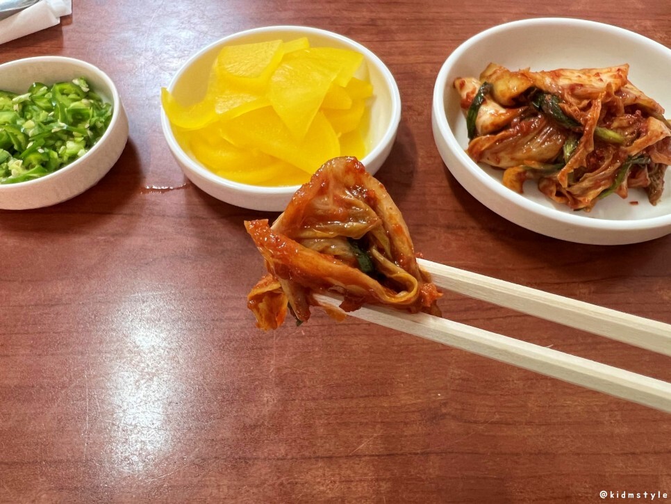 이 집은 사실 김치의 존재감이 상당한 집이다. 사장님이 며칠에 한 번씩 직접 담으시는 김치인데 맛이 상당히 좋다. 본가에 엄마가 담으시는 김장 김치의 맛과 거의 흡사해서 내 입에 착착 붙는 김치이다. 엄마 김치가 정말 맛있어서 식당에서 김치에 손을 잘 안대는 편인데 여기 김치는 늘 많이 먹게 된다.
