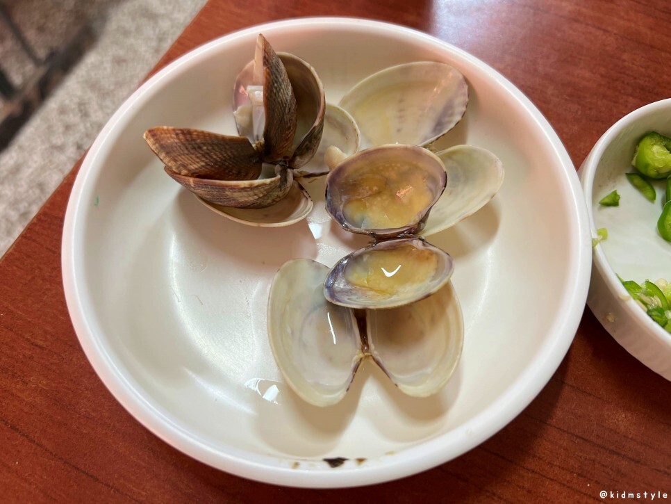 바지락은 때에 따라 다른데 오늘을 알맹이가 큰 게 이 정도 들어가 있다.