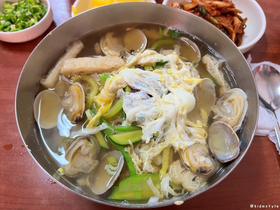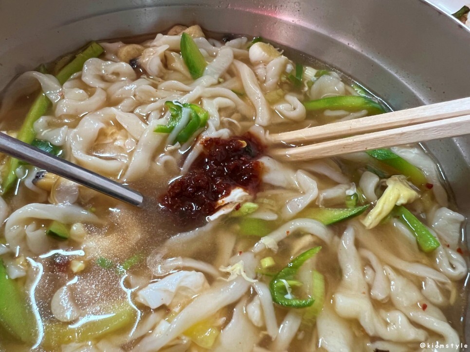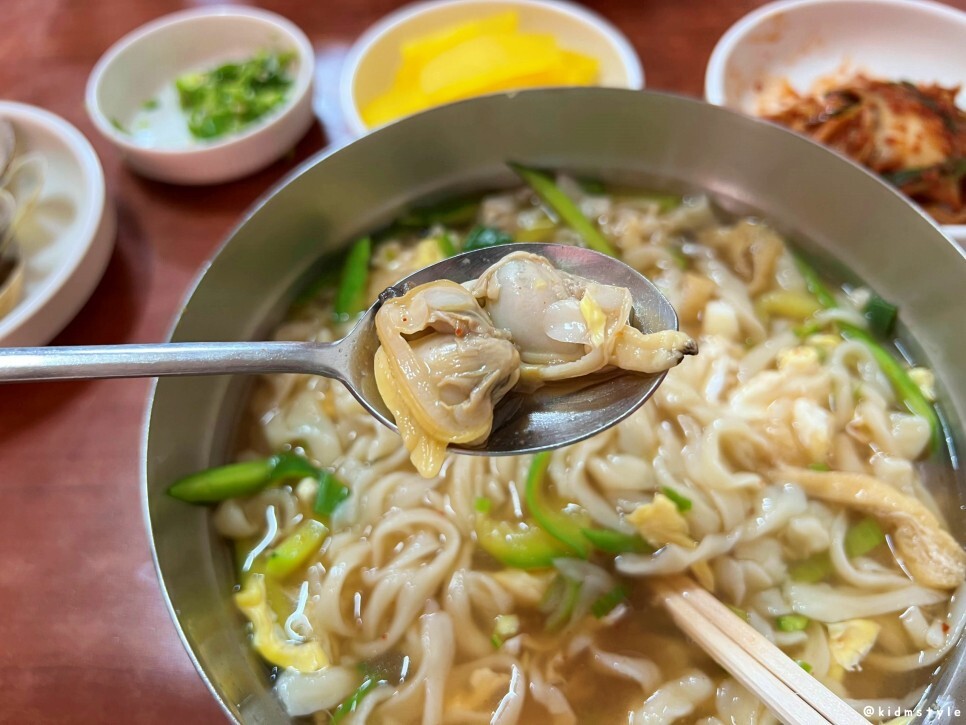 주문한 칼국수가 나왔다. 참고로 기본적으로 남자는 많이 주고 여자는 양을 적게 주는 편이니 주문 시 많이 먹고 싶으면 꼭 많이 달라고 요청하기 바란다.