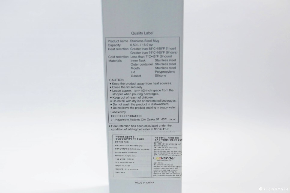 타이거라는 브랜드에 익숙한 분들이 많을 것이다. 일본 오사카에서 1923년에 시작한 가정용품 전문 기업인데 100년이 된 기업이다. 텀블러를 다양한 제품을 많이 써봤는데 확실한 건, 일본 제품과 국산 제품이 비교가 안되더라. 일본 제품 특히 써모스가 성능이 참 좋다.