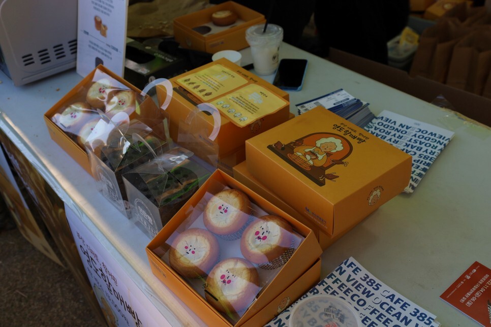 요즘 영도에서 가장 핫한 카페 중 하나인 카페 385에서는 커피 시음과 함께 부산 대표 디저트 빵으로 인기가 많은 영도할매빵을 소개하고 있는데요. 시식을 해보니 정말 맛있습니다. 크림치즈와 고구마가 들어간 영도할매빵 인기 있는 이유가 있었네요.