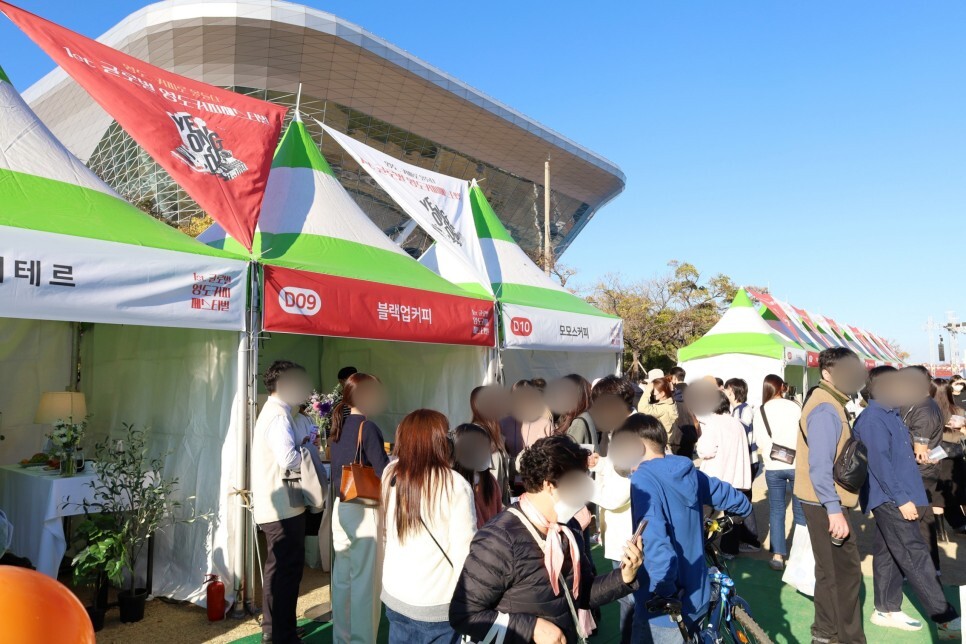 이곳저곳 쉬어갈 수 있는 공간이 많이 보입니다. 가족, 친구, 연인 등 다양한 연령대의 관람객들이 여유를 즐기고 있는 모습입니다. 부스가 많은 행사장에도 서서 커피를 마실 수 있는 공간도 많았고요. 확실히 행사는 넓은 곳에서 열리는 게 여러모로 좋은 것 같습니다.