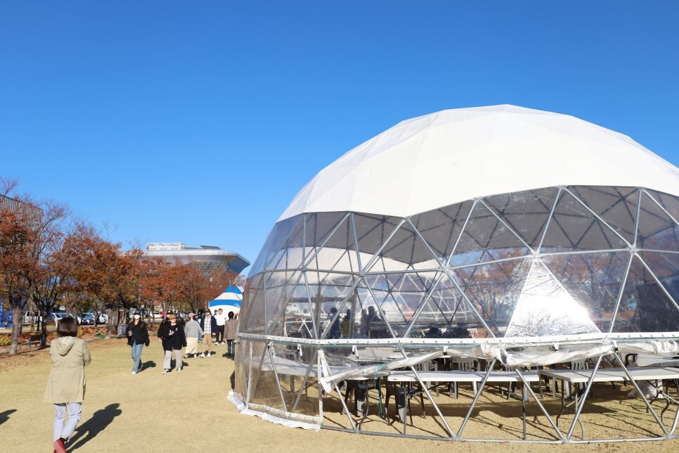 커다란 돔이 2개 있습니다. 앞쪽은 돔 체험실, 뒤쪽은 돔 세미나실인데요.