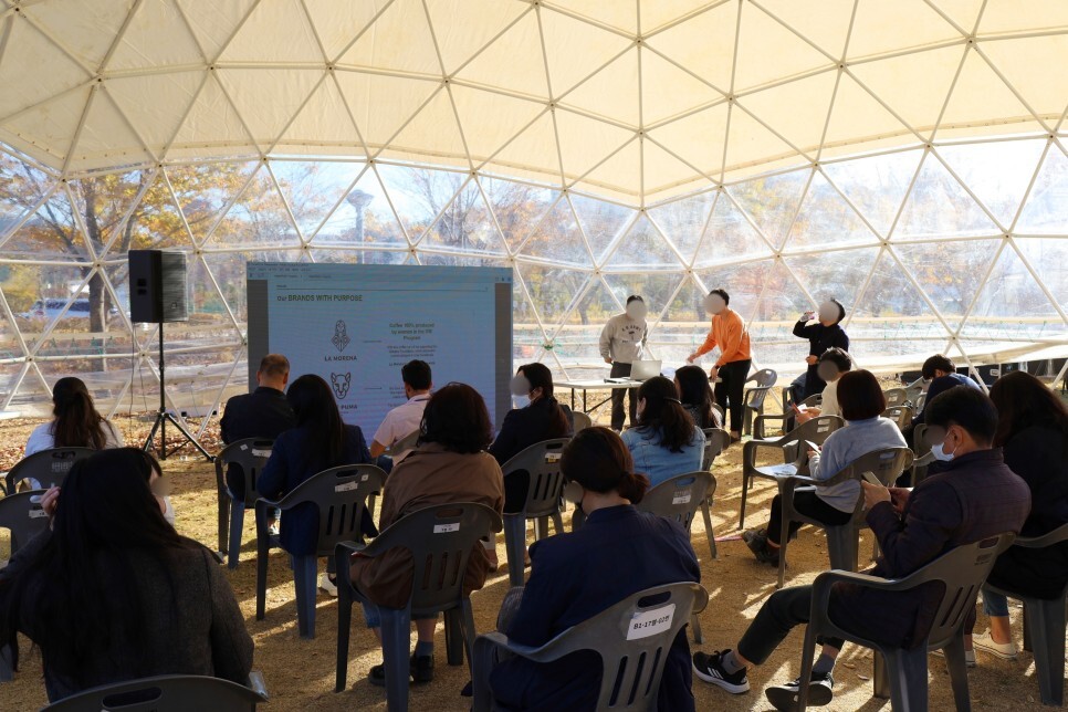 마침 돔 세미나실에서는 세미나가 한창인데요. 중앙아메리카 커피 생산자와 함께하는 토크 및 시음회 행사인데 참석자들의 열기가 대단했습니다.