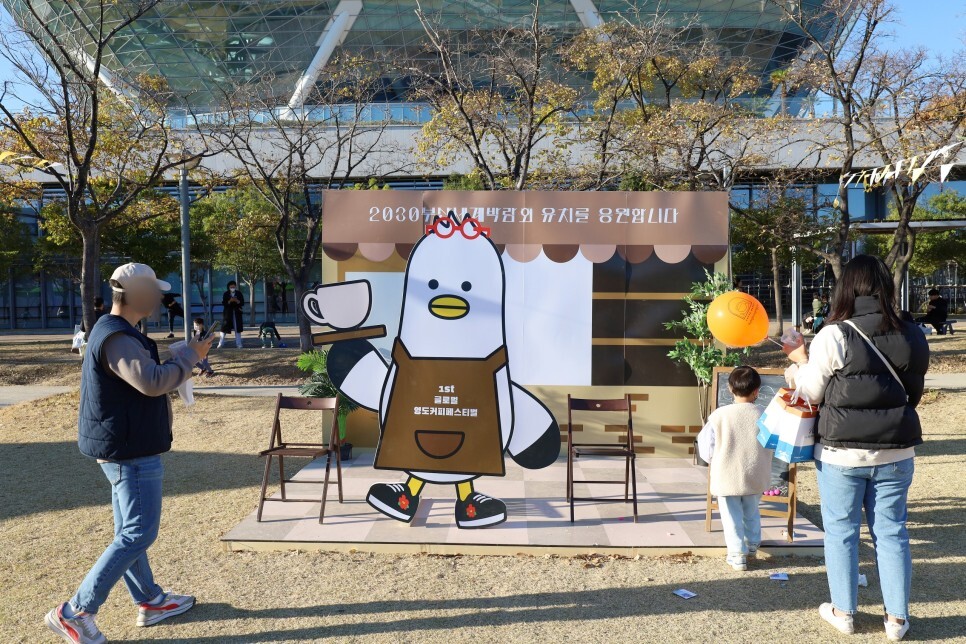 그리고 반가운 친구를 만났습니다. 부산광역시 캐릭터 부기인데요. 2030 부산세계박람회 유치를 응원하고 있네요. 참 귀엽죠? 인기가 많습니다.