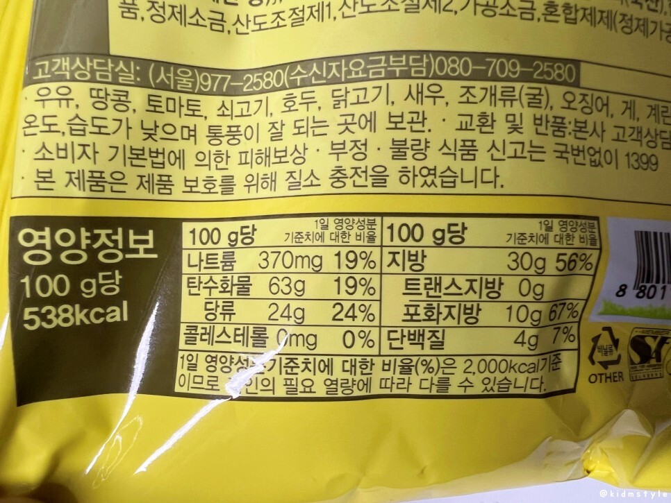 한 봉지에 174g 짜리인데 다양한 용량의 제품이 판매 중이며 이 제품은 마트 기준으로 한 봉지에 2,000원 정도 하는 것 같다.