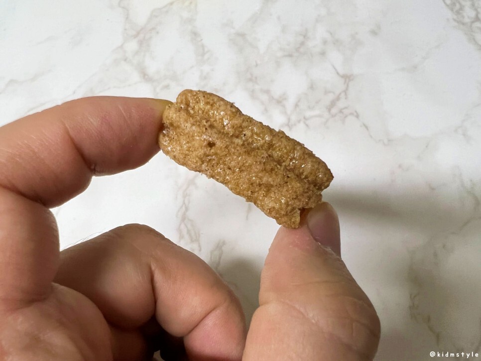 크기는 이 정도이다. 하나 맛을 보니 상당히 고소하다. 고소함 속에 달달함이 수줍게 고개를 들고 나오는 느낌이랄까? 그리고 시나몬의 향이 옅게 느껴진다.