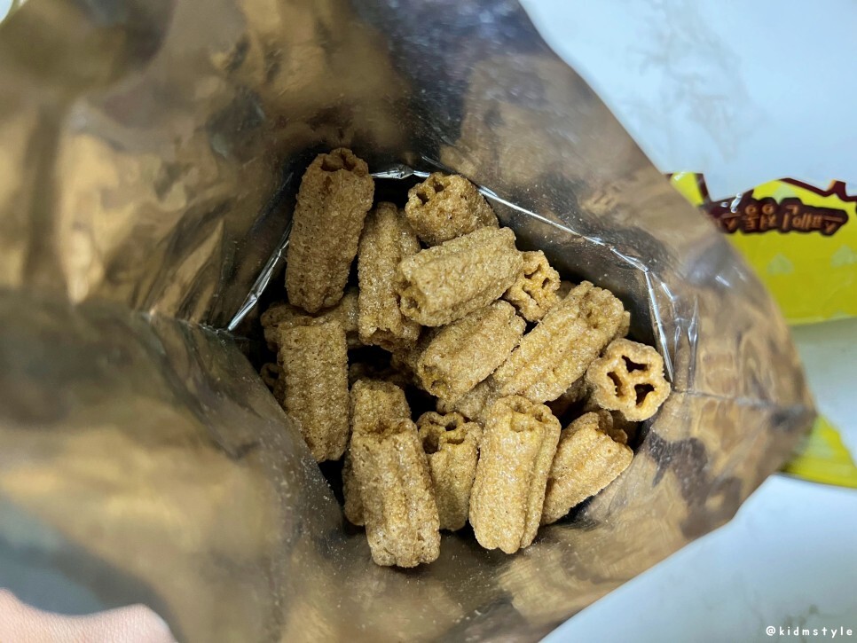 놀이공원에서 흔히 먹던 츄러스가 빵의 식감이라면 이 제품은 과자의 식감이다. 과자 중에 짱구, 신짱이 있는데 그 과자와 식감이 비슷하며 맛은 츄러스 이 제품이 조금 더 완성된 느낌이다.