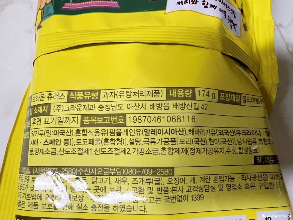 크라운 츄러스 영양성분 정보