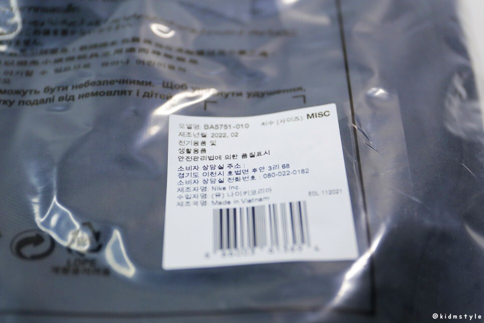 모델명은 BA5751-010이다. 이게 나이키코리아 탭 일명, 나코탭이니 참고하기 바란다. 신발에서 보던 빨간 나코탭이 아니라서 짝퉁이 아닌가 오해할까 싶어서 언급한다. 정품택이니 구입 시 참고하기 바란다.