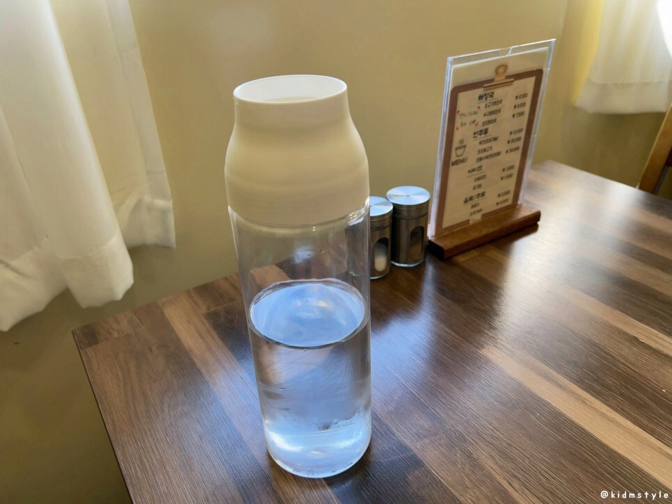 요즘 이 물병이 자주 보인다. 다이소에 가면 2천 원에 살 수 있는 물병인데 따로 잠금장치가 없고 기울이면 물의 무게에 의해 얇은 판이 열리면서 물이 쏟아지는 구조이다.