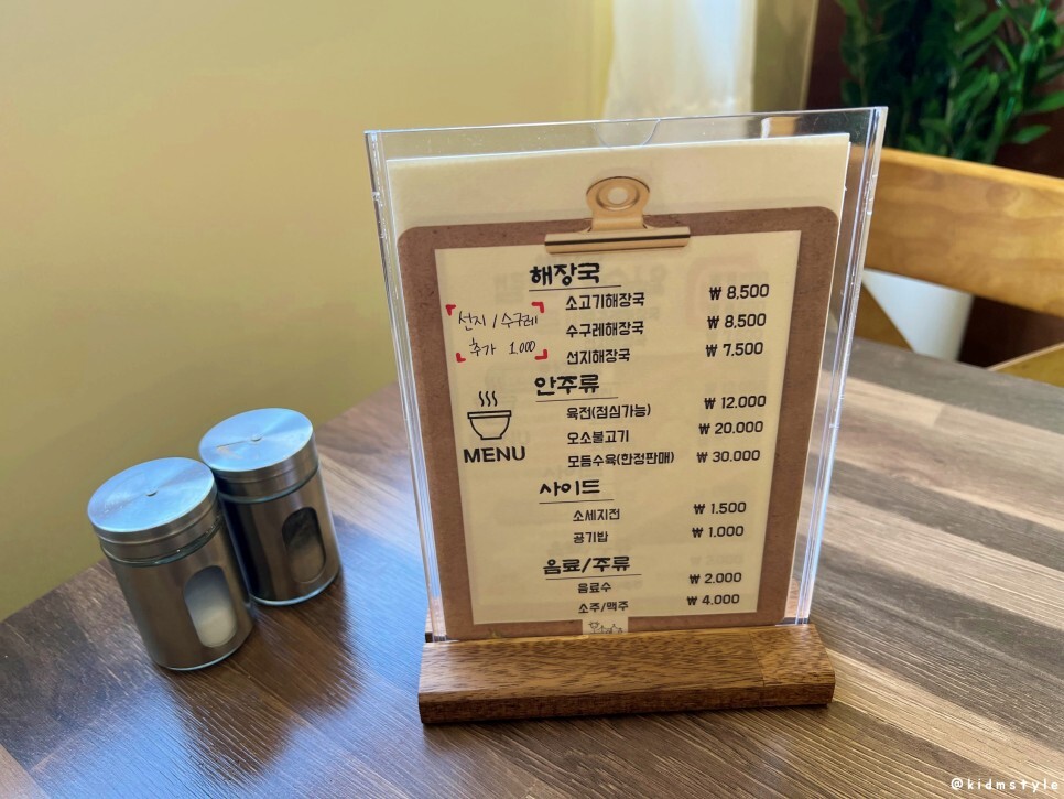 메뉴판이다. 최근에 내가 올린 포스팅을 본 이웃분들은 아시겠지만 나는 수구레 국밥에 진심이라 고민하지 않고 수구레해장국을 주문하였다.