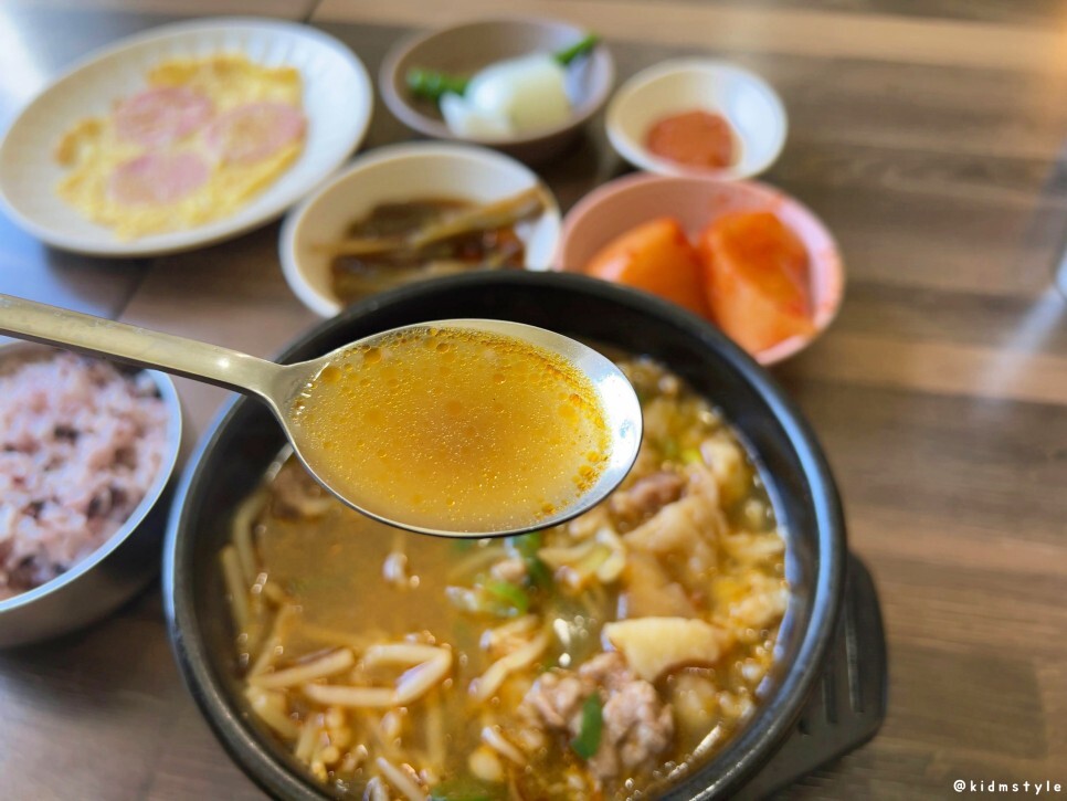 한 숟가락 떠서 국물에 푹 적셔서 맛을 본다. 이 집 수구레국밥은 상당히 깔끔한 편에 속한다. 그래서 내가 좋아하는 충무동해안시장, 자갈치시장의 그 수구레국밥과는 거리가 있다. 이렇게 깔끔한 스타일의 수구레국밥의 최고 장점은 호불호가 없다는 점이다.