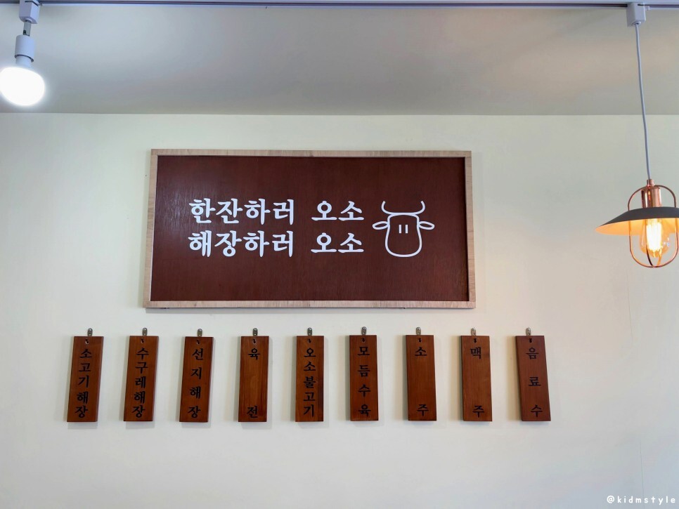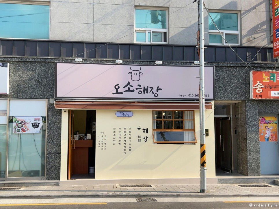 귀여운 소 그림이 그려져 있는 간판이다. 마! 일로 오소~ 해장할라믄~의 줄임말 같은 오소해장
