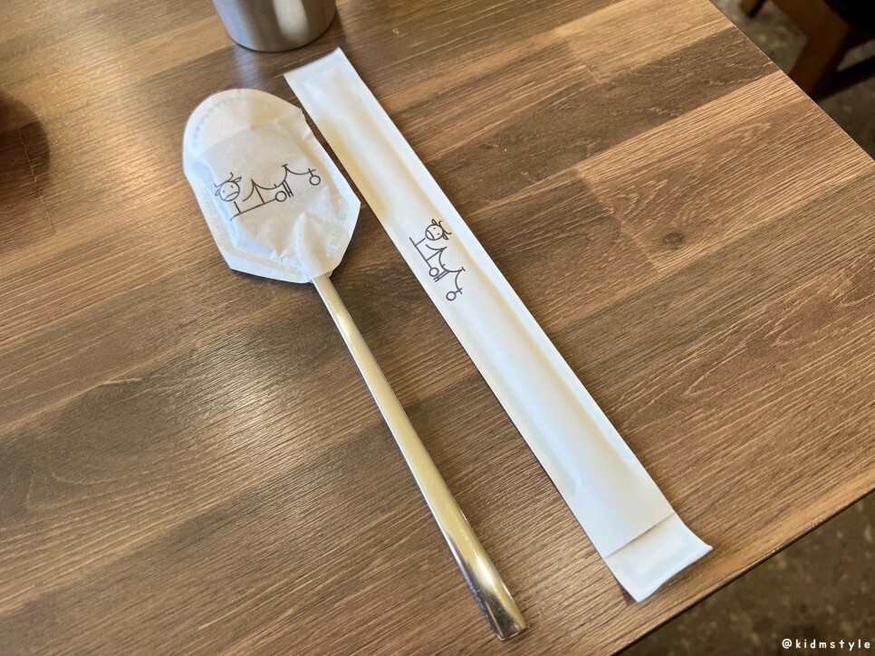 테이블 옆에 달려 있는 서랍을 열어보니 수저가 보인다. 종이에 감싸놓아서 위생적으로 좋아 보이네.