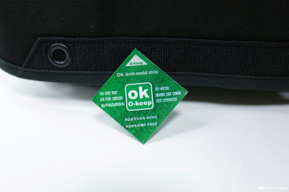 반가운 OK 스티커이다. 최근에 가방을 구입하면 쉽게 볼 수 있는 스티커인데 OK o-keep Anti-mold chip이라고 실리콘 제습제를 대체하는 친환경 기술이며 유통과정 시 박테리아 및 유해 세균 번식을 효과적으로 방지하는 역할을 한다.