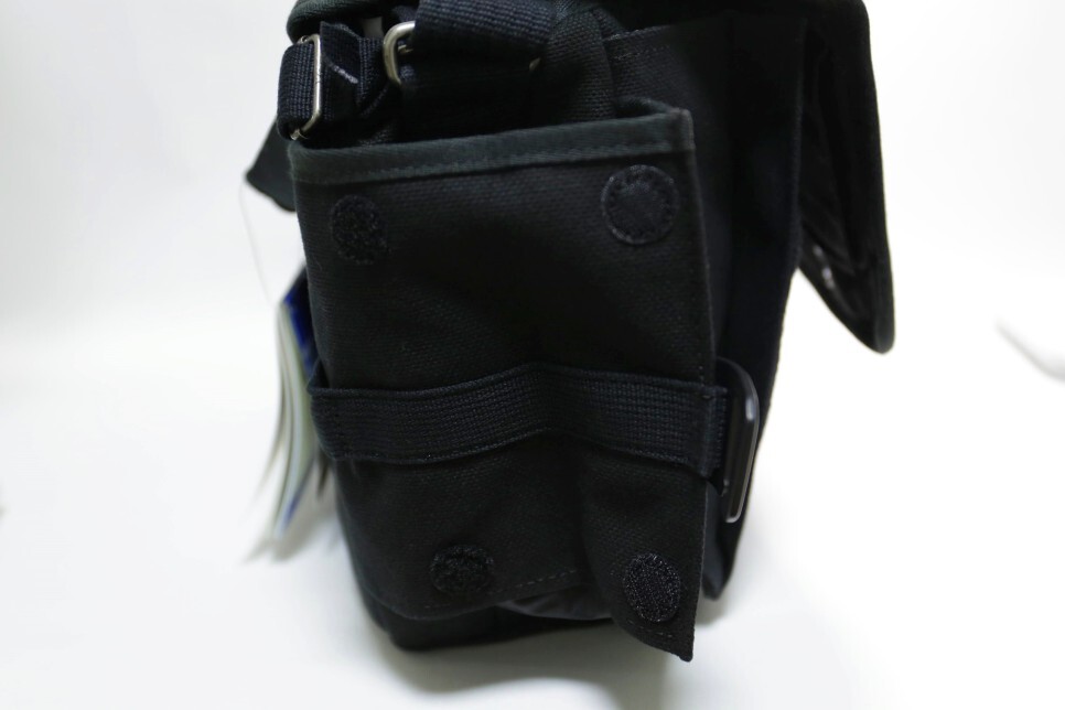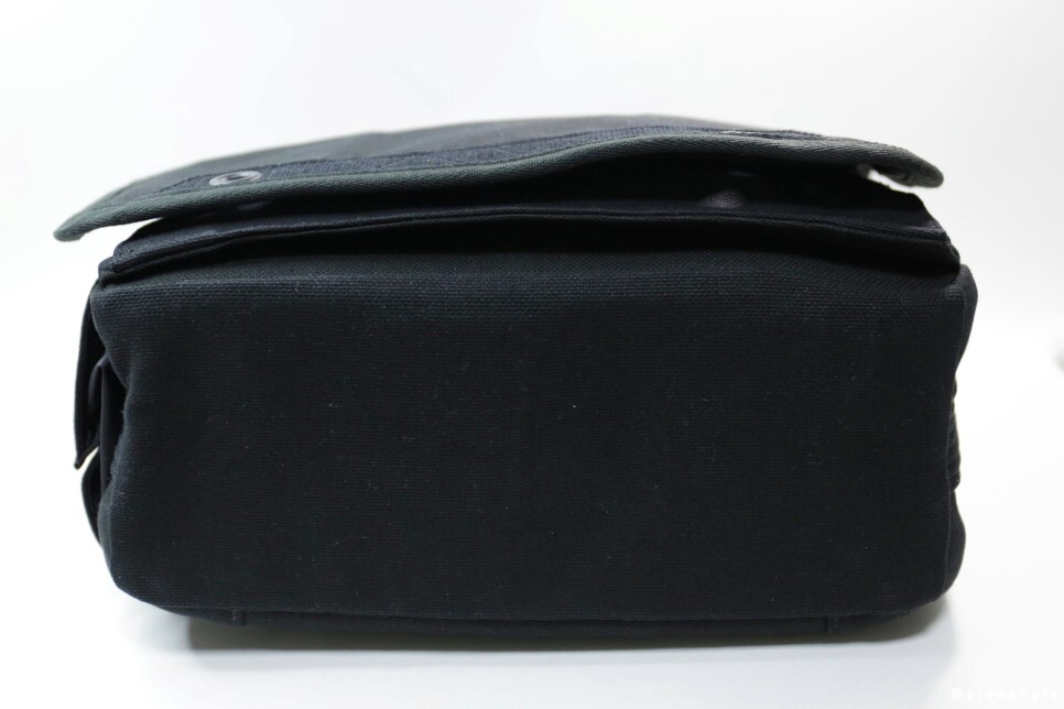 바닥 부분은 아무것도 없고 깔끔하다. 캔버스 재질의 검은색 가방이라 바닥에 놓으면 먼지가 잘 붙고 표가 나는 부분이 좀 아쉽다. 한 번씩 털어줘야 한다. 4곳에 징 같은 거라도 박아줬다면 하는 아쉬움이 있다.