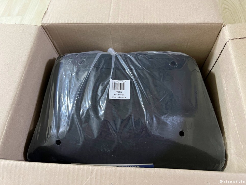 택배 상자가 꽤 큰데 상자를 열어보니 가득 들어가 있는 가방이 인상적이다.