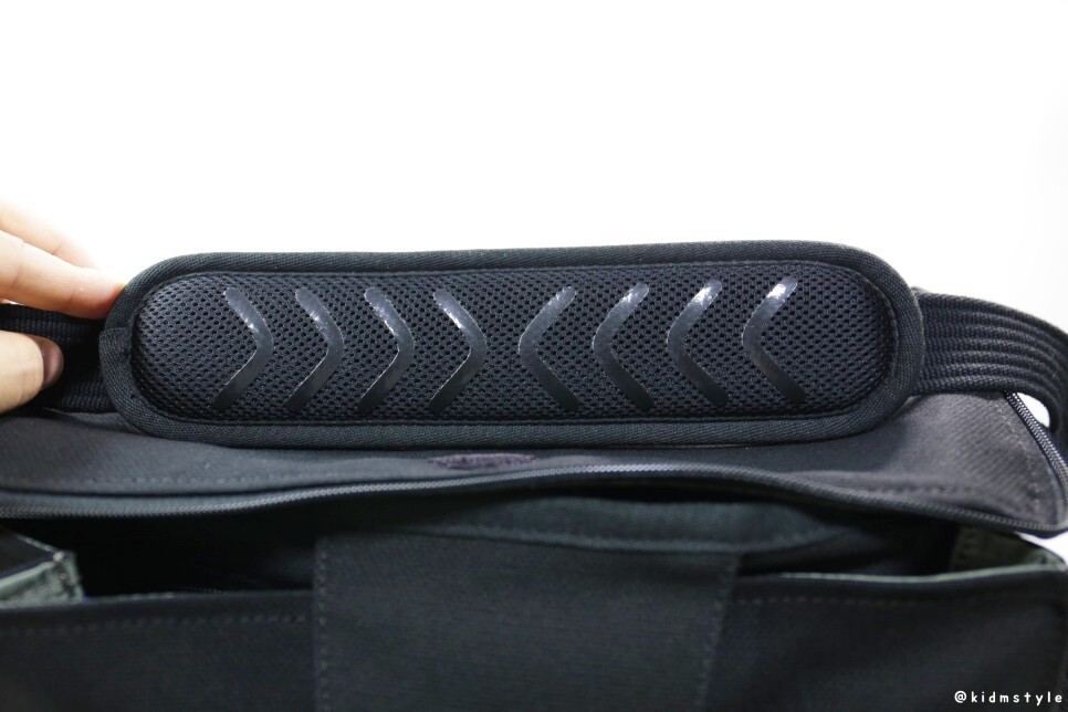 돔케 등 다른 카메라 가방 브랜드에는 기본 제공되지 않아서 별도로 구입해야 하는 어깨 패드가 이 제품은 기본 장착되어 있다. 미끄럼 방지가 확실히 되어 있어서 어깨에서 잘 미끄러지지 않는다. 당연한 얘기지만 어깨 끈은 길이 조절이 가능하다.