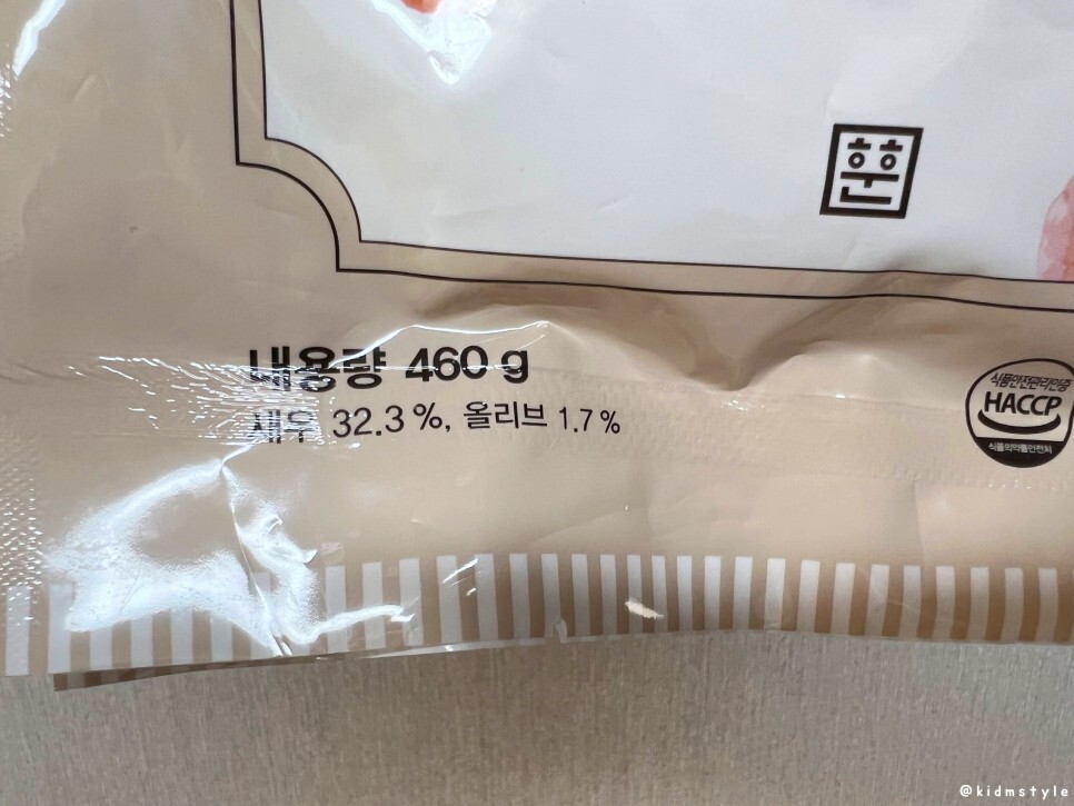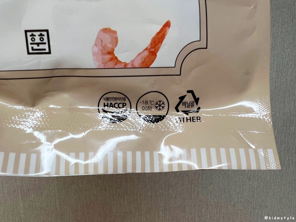 HACCP 해썹 인증 마크가 반갑다. 이런 제품을 구입할 때 해썹 인증은 필수이다. 냉동 보관이라 받자마자 냉동실에 넣었다.