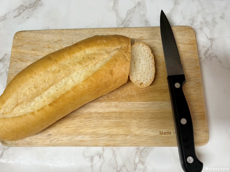 먹기 좋게 과도로 썰어준다. 빵칼이 있으면 좋지만 빵을 평소에 자주 안 먹는 나에게는 사치라 과도로도 충분하다. 식도를 꺼내기 귀찮아서 과도를 꺼낸다.