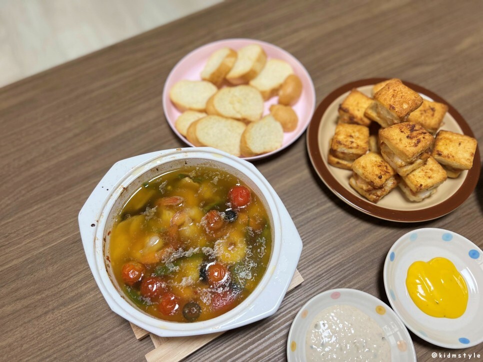 맛있게 차려보았다. 감바스만 먹기에는 아쉬워서 멘보샤도 준비했는데 추후 포스팅으로 소개할 예정이고.